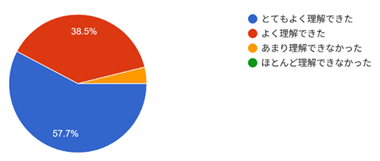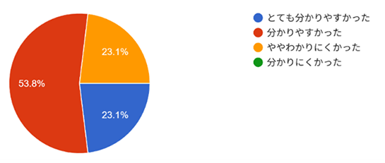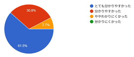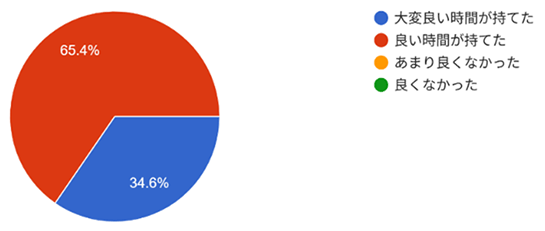 - アンケート結果(以下の質問について3段階で回答 とても良い・良い・あまり・未回答)